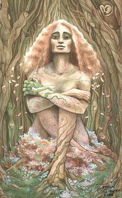 Através das lendas celtas, mulheres sobrenaturais são criadas e utilizadas para representar a Terra, que é definitivamente feminina em sua natureza. A Coruja, a representação totêmica de Blodeuwedd, significa a completa transformação do iniciado, como representado pela morte virtual e subsequente cura de Llew. Ela é representada pela carta da Imperatriz do Tarot. É a Deusa das emoções, representando a matriz que reforma as energias transpessoais e universais como bem definida força vital. Ela também é a Deusa das iniciações cerimoniais e é conhecida como a Deusa Nona das Flores do Paraíso das Ilhas do Oeste, a sabedoria da inocência, Mistérios Lunares e iniciadora de suas províncias.