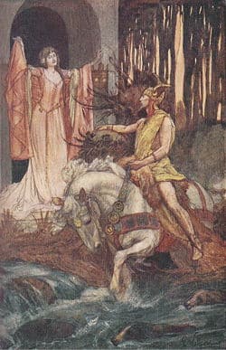 Então, ele recebeu alguns dons mágicos do seu tio para que pudesse receber seu título, de modo a evitar sua morte, a menos que houvesse circunstâncias especiais e absurdas. Tais como: que ele não poderia ser morto dentro de um ambiente ou em área externa; a pé ou a cavalo; e a lança que poderia matá-lo deveria ser forjada em um período de tempo sagrado.